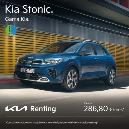 Campaña aplicable exclusivamente al modelo, motor, acabado, caja de cambios, versión y condiciones de cada una de las ofertas. Cuota de renting para el producto Kia Renting Basic (consulte condiciones en Red de Concesionarios Kia). Servicios incluidos: Alquiler del vehículo, matriculación e impuestos, asistencia en carretera 24h, mantenimiento, ITV y reparaciones, sustitución de neumáticos (según kilometraje anual contratado), seguro a todo riesgo con franquicia de 450 EUR, gestión de multas online. Kia Renting, servicio prestado por Arval Service Lease S.A.U. Válido para contratados firmados por Kia Renting, hasta el 31 de Diciembre de 2023. Sujeto a aprobación de Cliente por parte de Kia Renting. Consultar condiciones específicas de cada modelo ofertado accediendo en los mismos.